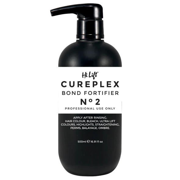 Step 2 of the Hi Lift Cureplex range of revolutionary haircare products, the No.2 Bond Fortifier is a rinse that works to fuse newly formed hair bonds to the hair cortex, smoothing the cuticle layer of your hair to create a uniform surface.
